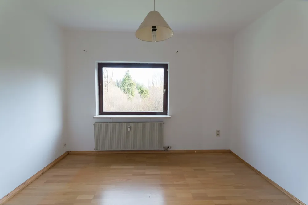 Geradeaus befindet sich das Kinderzimmer bzw. Büro mit ca. 12 m² und komfortablem, rechteckigen Zuschnitt.