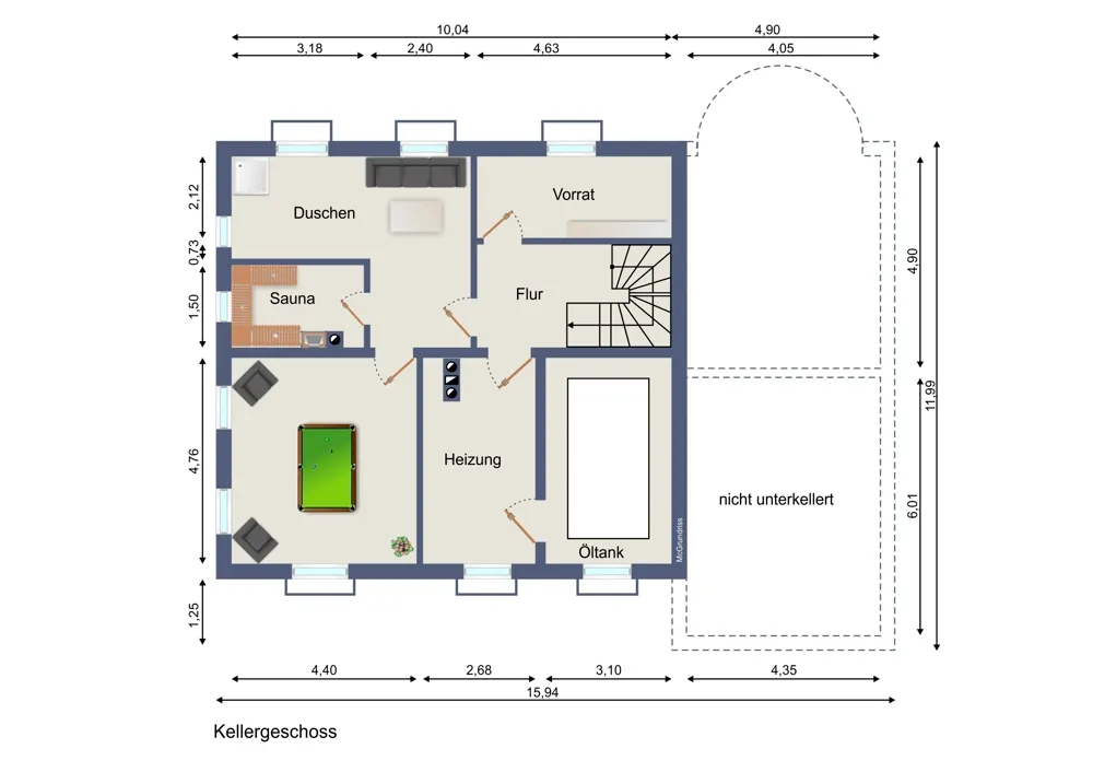 Im Keller befindet sich der Heizungs- und Waschraumraum und praktischerweise direkt daneben der Tankraum. Aktuell können Sie hier ein weiteres Schlafzimmer sowie ein Bad mit begehbarer Dusche nutzen. Ein weiterer Raum dient Ihnen als Vorratsraum oder Werkstatt je nach Bedürfnis.
