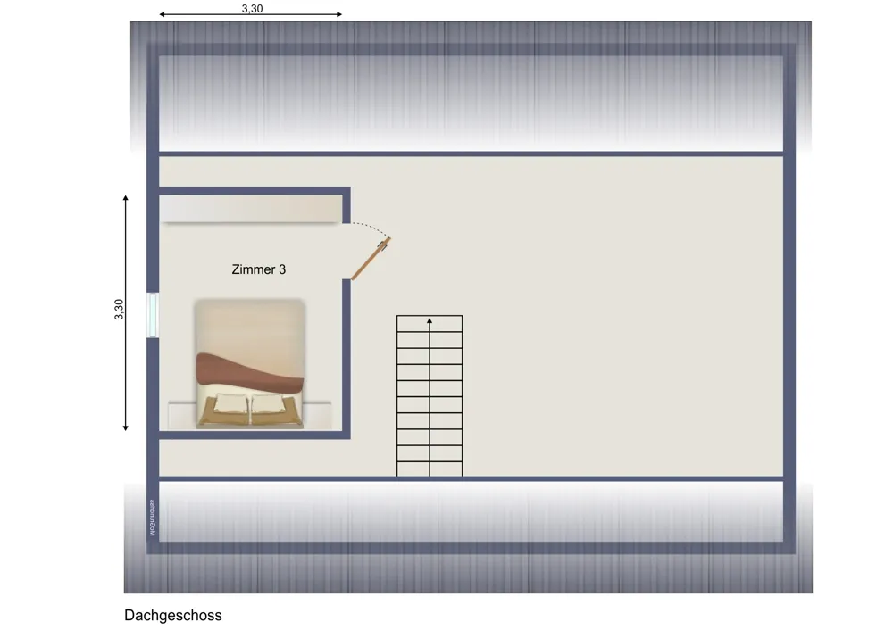 Im Obergeschoss befindet sich ein weiteres Zimmer sowie der Speicher.